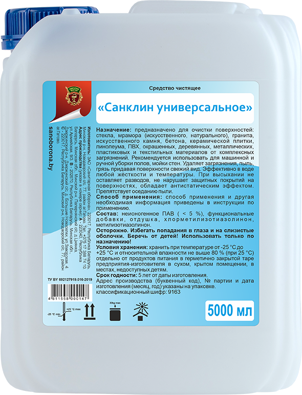 Предлагаем купить универсальное чистящее средство в Минске от компании «Санитарная оборона». Компания производит дезинфицирующие и чистящие средства для уборки дома, общественных мест, промышленных помещений. Собственное производство позволяет нам выпускать продукцию, цена которой ниже, чем у конкурентов без ущерба качеству. Доставка осуществляется при заказе от 150 рублей. Вся продукция сертифицирована в установленном порядке, соответствует требованиям безопасности.