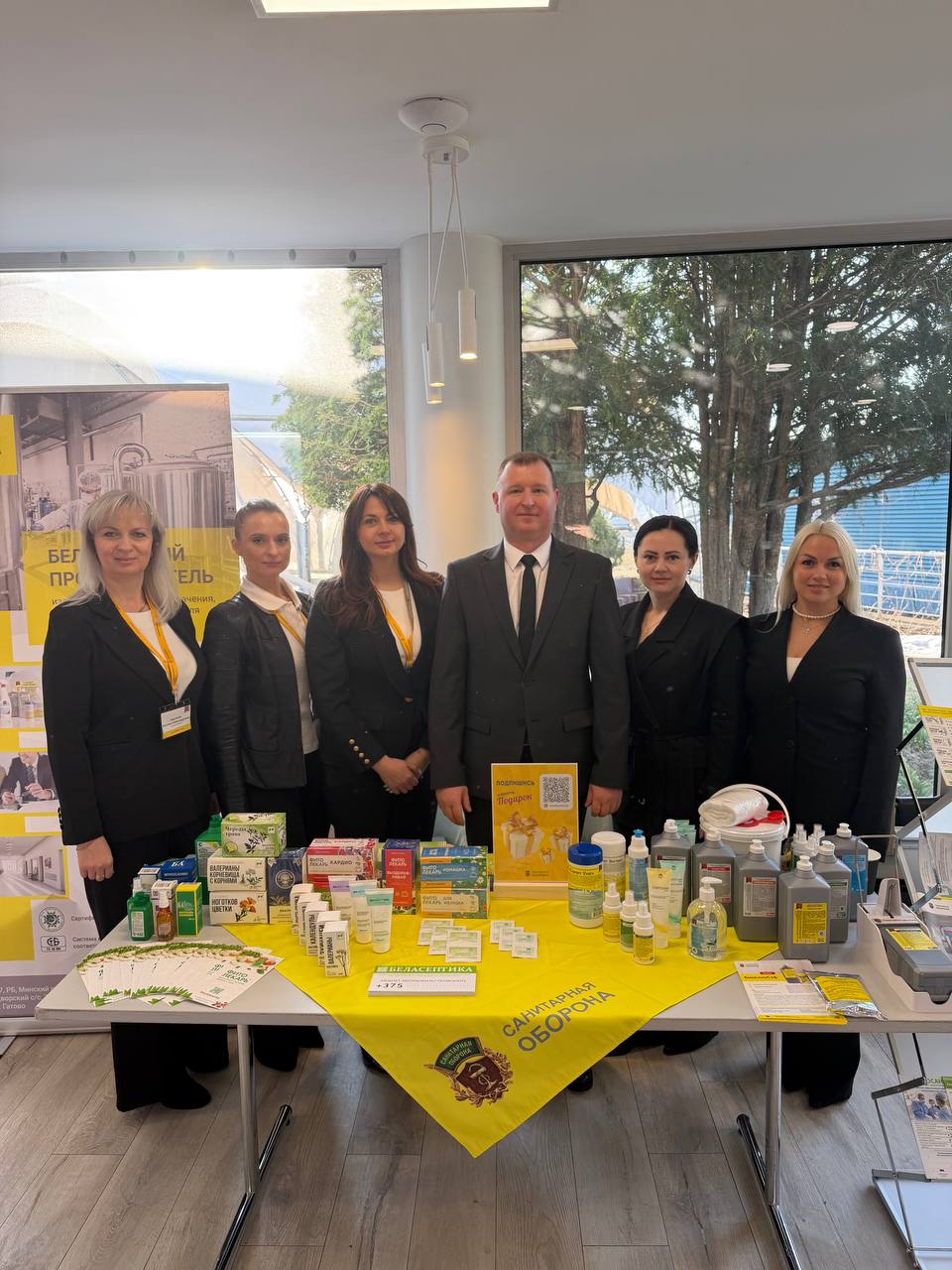 На нашем стенде мы презентовали продукцию «Санитарной обороны» и «БЕЛАСЕПТИКИ», которая пользуются заслуженной популярностью в аптеках: антисептики, различные БАД, лекарственные препараты и настойки, медицинскую вату, салфетки для экстренной дезинфекции и многое другое.