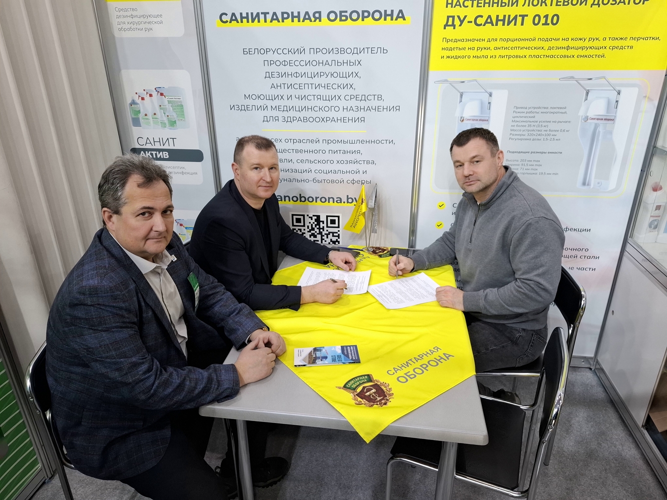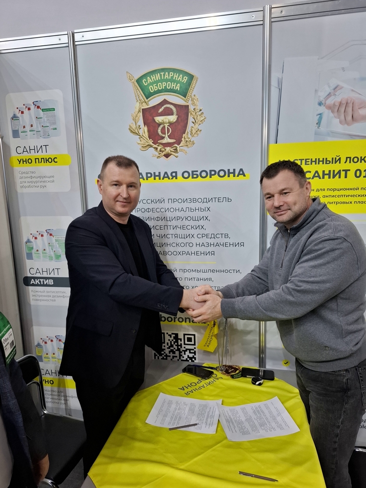 Из знаковых договоренностей выделим подписание соглашение между ЗАО «Санитарная оборона» и ООО «Монтажэнергопромстрой» (РФ) о намерениях сотрудничества по вопросу локализации в России производства современных и эффективных дезинфицирующих средств. В церемонии подписания участвовали представители Китайско-Белорусского индустриального парка «Великий камень», резидентом которого является наша компания.