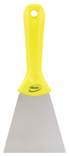 Этот ручной скребок имеет нержавеющее гибкое стальное лезвие с защищенными закругленными углами, высокопрочное крепление и специальный эргономичный хват для руки. Он идеально подходит для удаления липких отложений, которые засоряют щетки, а также для удаления засохших или подгорелых загрязнений и ингредиентов.
